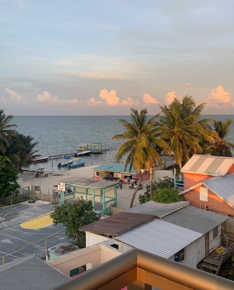 Toucan Villas Condo is ideally located right on Main Street in Caye Caulker, offering a rare combination of spacious comfort and stunning views to enhance your Belize experience. After a day at the beach, snorkeling, sailing, or exploring, unwind while soaking in the sunset.